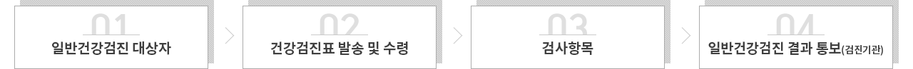 1. 일반건강검진 대상자 → 2. 건강검진표 발송 및 수령 → 3. 검사항목 → 4. 일반건강검진 결과 통보(검진기관)