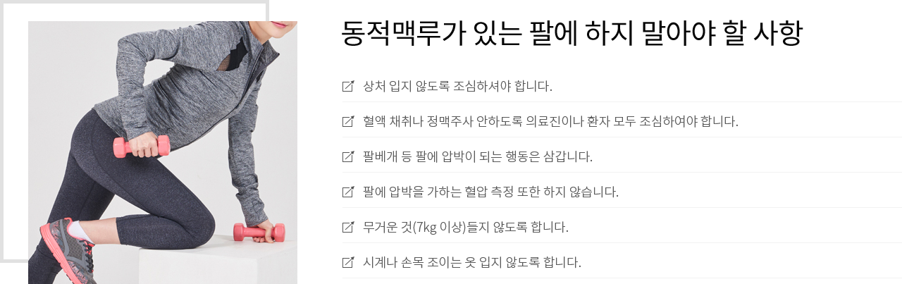 동적맥루가 있는 팔에 하지 말아야 할 사항