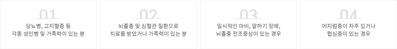 - 뇌졸중 및 심혈관 질환으로 치료를 받았거나 가족력이 있는 분
