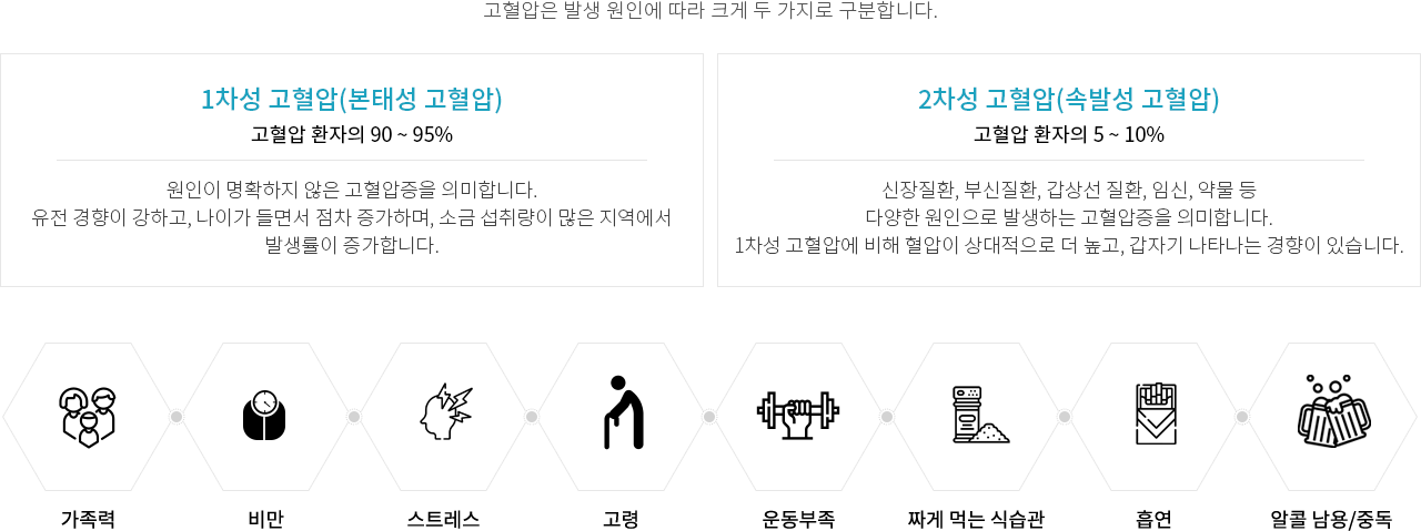 고혈압은 발생 원인에 따라 크게 두 가지로 구분합니다.